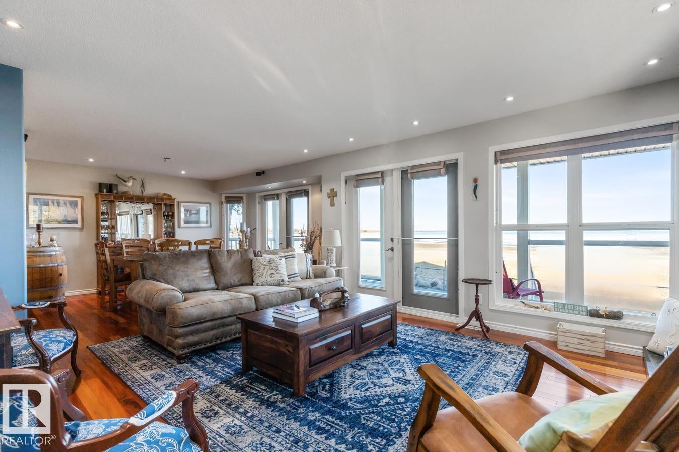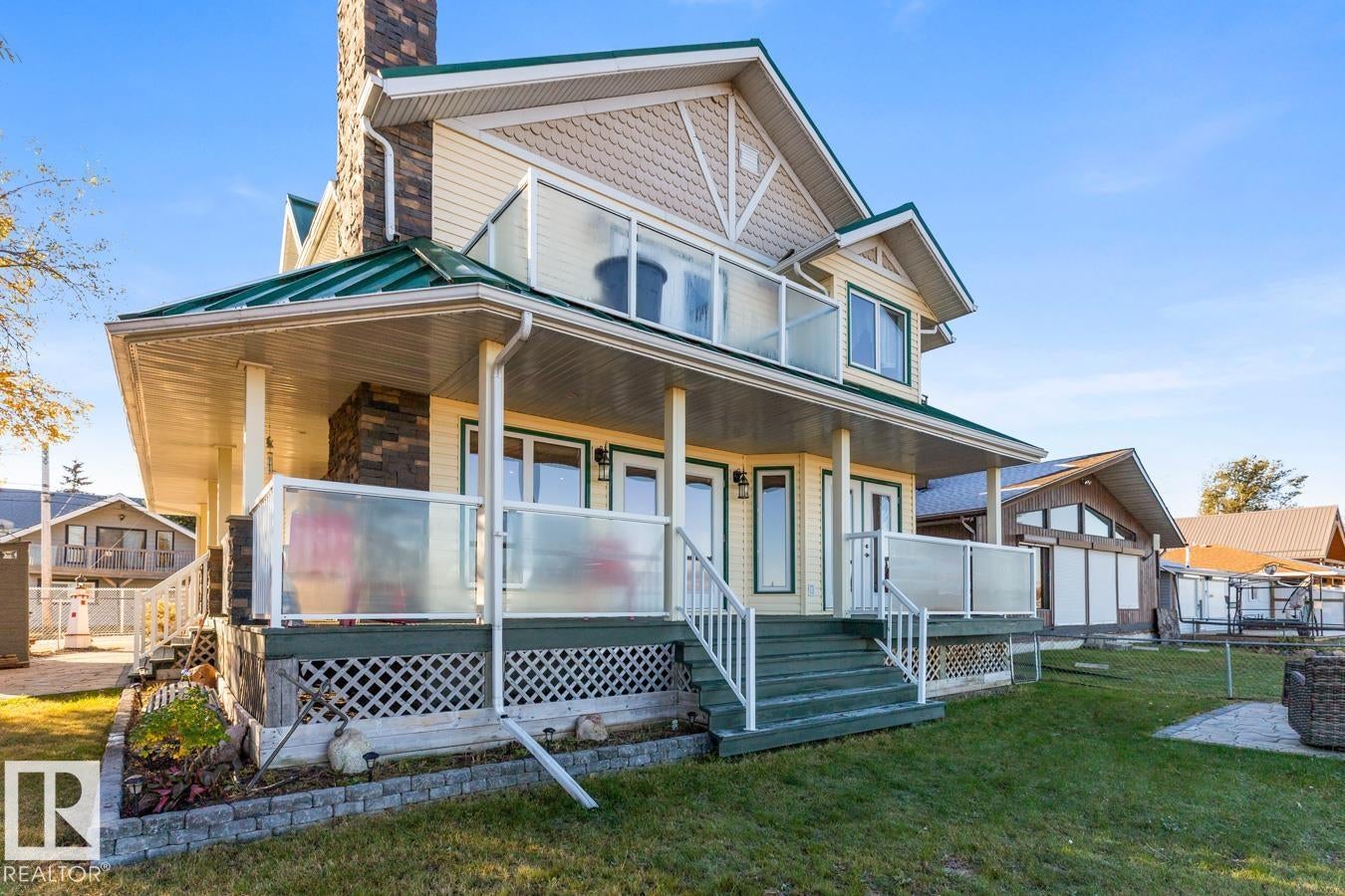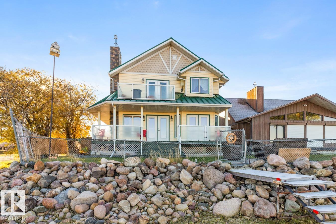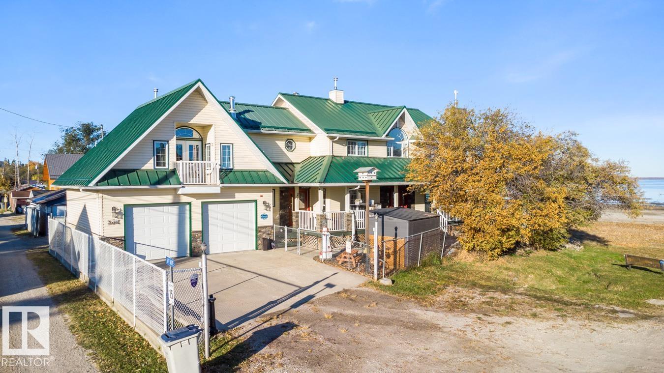 Lakefront Living at Lac Ste. Anne! 3053 sqft 2-storey on the beach, w/ 3 beds + 1-bed guest suite offering breathtaking views & year-round enjoyment. Thoughtfully designed & quality built, featuring hrdw flrs, lrg windows w/ lake views, & new stone gas FP in the living room. The chef-inspired kitchen boasts drk cabinets, lrg island w/ 2nd sink, wine rack, & S/S appliances. The dining area is perfect for gatherings. The main floor also includes a den/office, laundry rm, & 2pc bath. Upstairs, you'll find a 4pc bath, & 3 spacious bdrms, including the primary retreat w/ luxurious 5pc ensuite, & private balcony. Full 1-bdrm guest suite above garage — ideal for visitors. New upgrades ($60K): 2 furnaces, HWT, Water cond, pressure tank, crawlspace encaps, & paint. A/C & metal roof. Fenced, landscaped yard is complete w/ wrap around deck, new stone patios, shed, & LED outdoor lights. Heated dbl att garage (w/220V) offers plenty of parking. This property combines elegance, comfort, & true lakefront living.