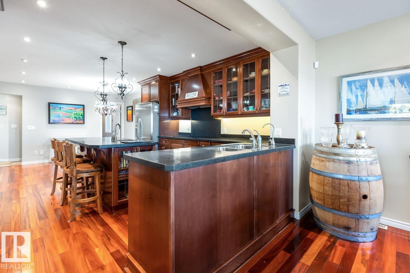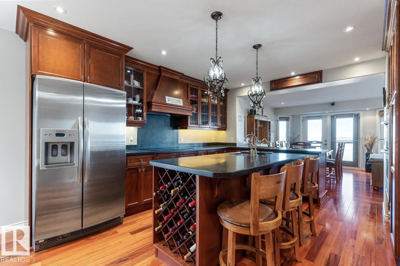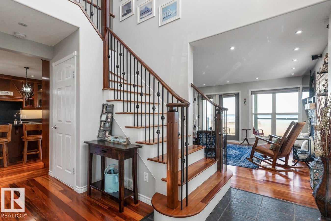 Lakefront Living at Lac Ste. Anne! 3053 sqft 2-storey on the beach, w/ 3 beds + 1-bed guest suite offering breathtaking views & year-round enjoyment. Thoughtfully designed & quality built, featuring hrdw flrs, lrg windows w/ lake views, & new stone gas FP in the living room. The chef-inspired kitchen boasts drk cabinets, lrg island w/ 2nd sink, wine rack, & S/S appliances. The dining area is perfect for gatherings. The main floor also includes a den/office, laundry rm, & 2pc bath. Upstairs, you'll find a 4pc bath, & 3 spacious bdrms, including the primary retreat w/ luxurious 5pc ensuite, & private balcony. Full 1-bdrm guest suite above garage — ideal for visitors. New upgrades ($60K): 2 furnaces, HWT, Water cond, pressure tank, crawlspace encaps, & paint. A/C & metal roof. Fenced, landscaped yard is complete w/ wrap around deck, new stone patios, shed, & LED outdoor lights. Heated dbl att garage (w/220V) offers plenty of parking. This property combines elegance, comfort, & true lakefront living.